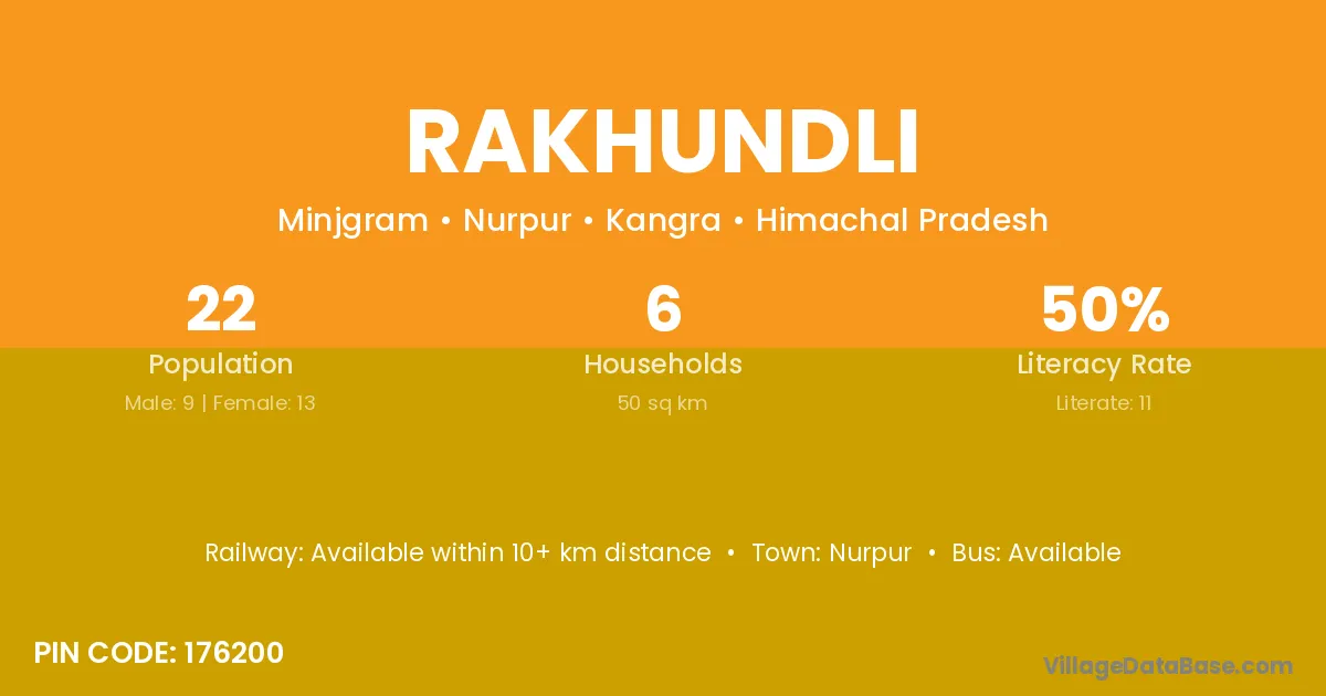 Nurpur is the nearest town to Rakhundli village for major economic activities