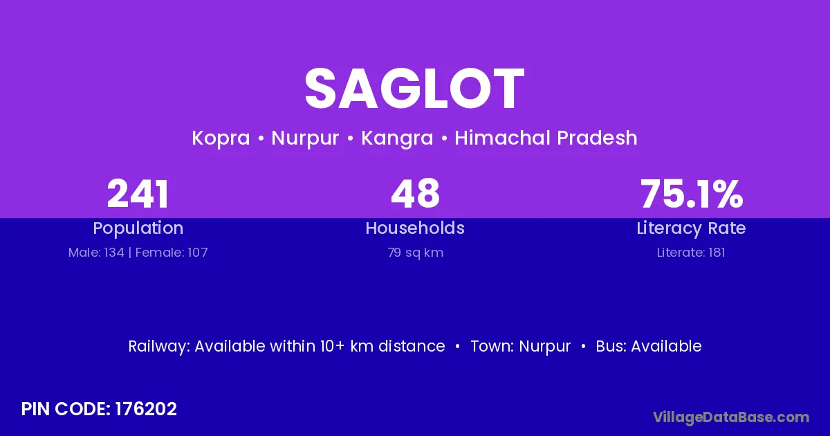 According to Census 2011 information, the village code of Saglot village is 176202.