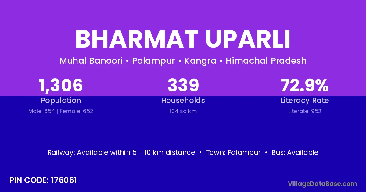 Palampur is the nearest town to Bharmat Uparli village for major economic activities