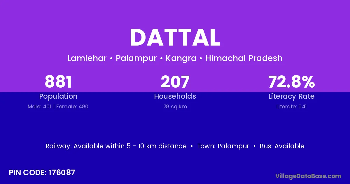 Palampur is the nearest town to Dattal village for major economic activities