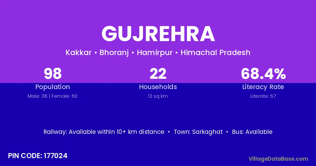 Gujrehra village has a total population of 386 people, of which 191 are males and 195 are females.