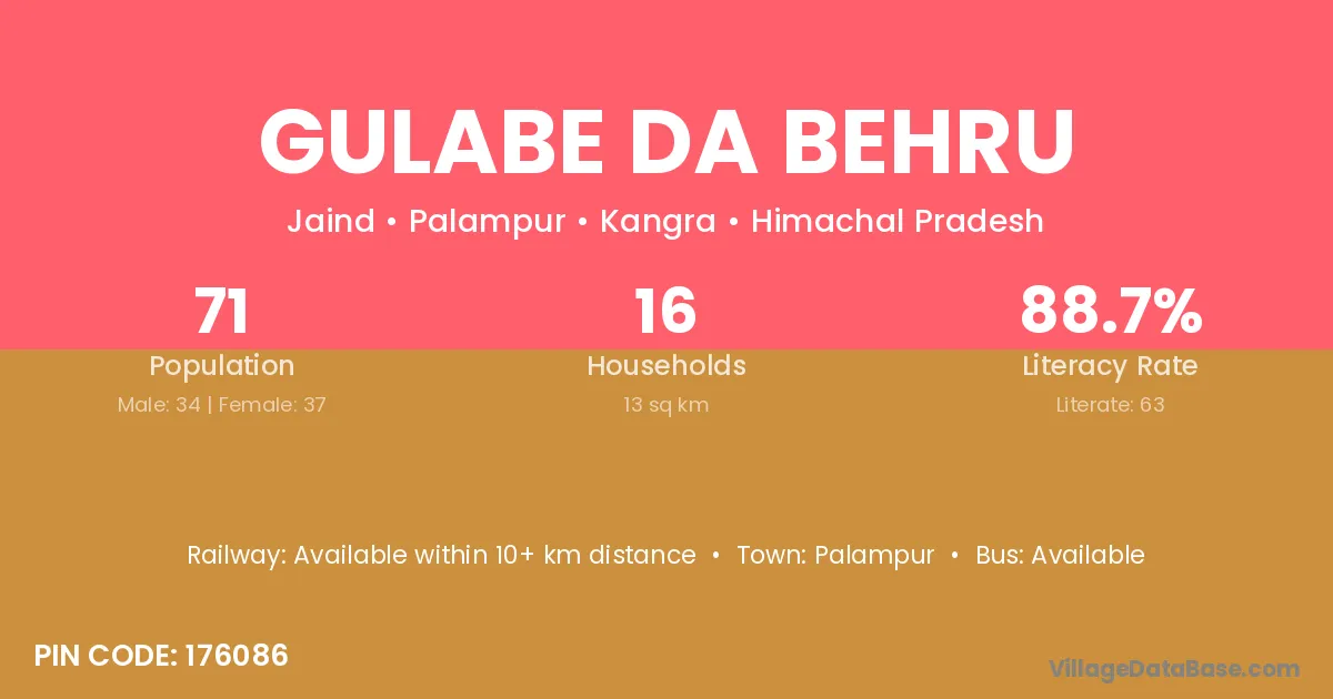 Gulabe Da Behru village has a total population of 71 people, of which 34 are males and 37 are females.