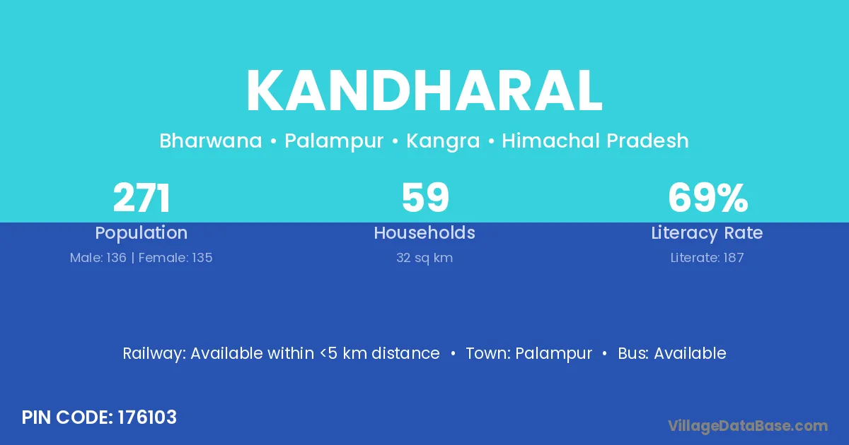 Kandharal village has a total population of 271 people, of which 136 are males and 135 are females.