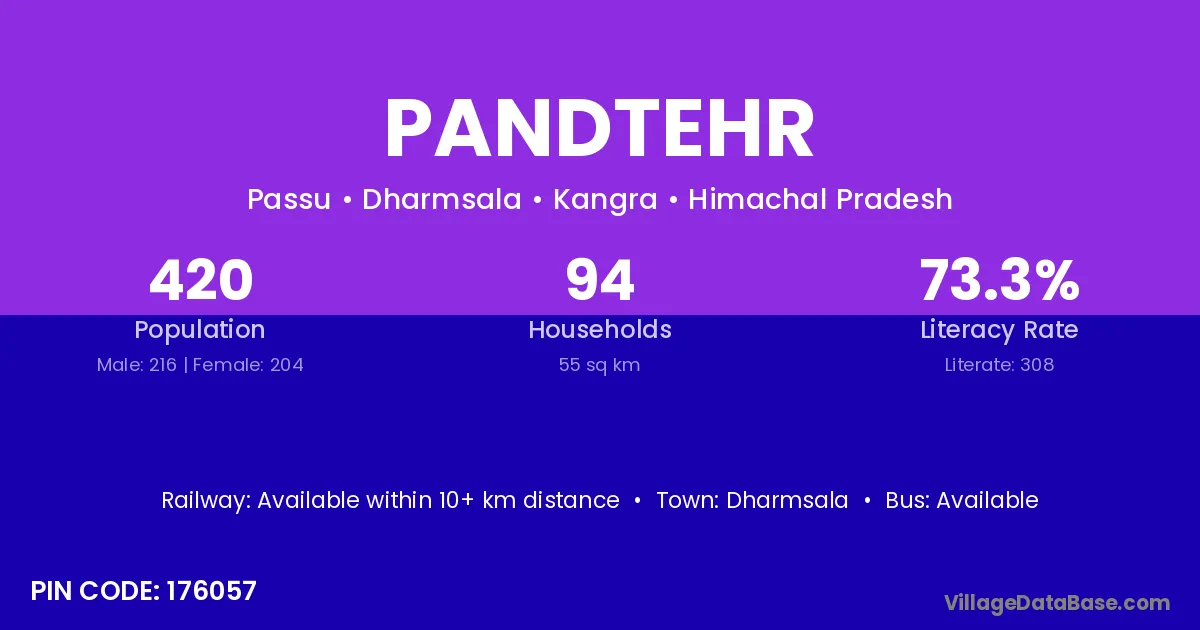 Palampur is the nearest town to Pandtehr village for major economic activities