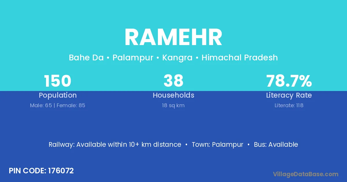 Palampur is the nearest town to Ramehr village for major economic activities