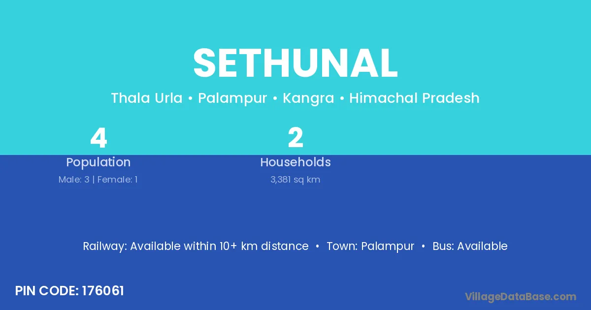 Palampur is the nearest town to Sethunal village for major economic activities