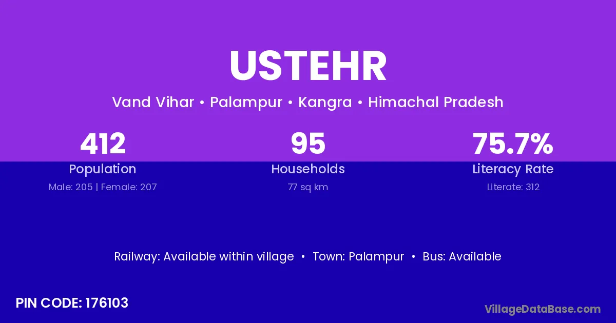 Ustehr village has a total population of 412 people, of which 205 are males and 207 are females.