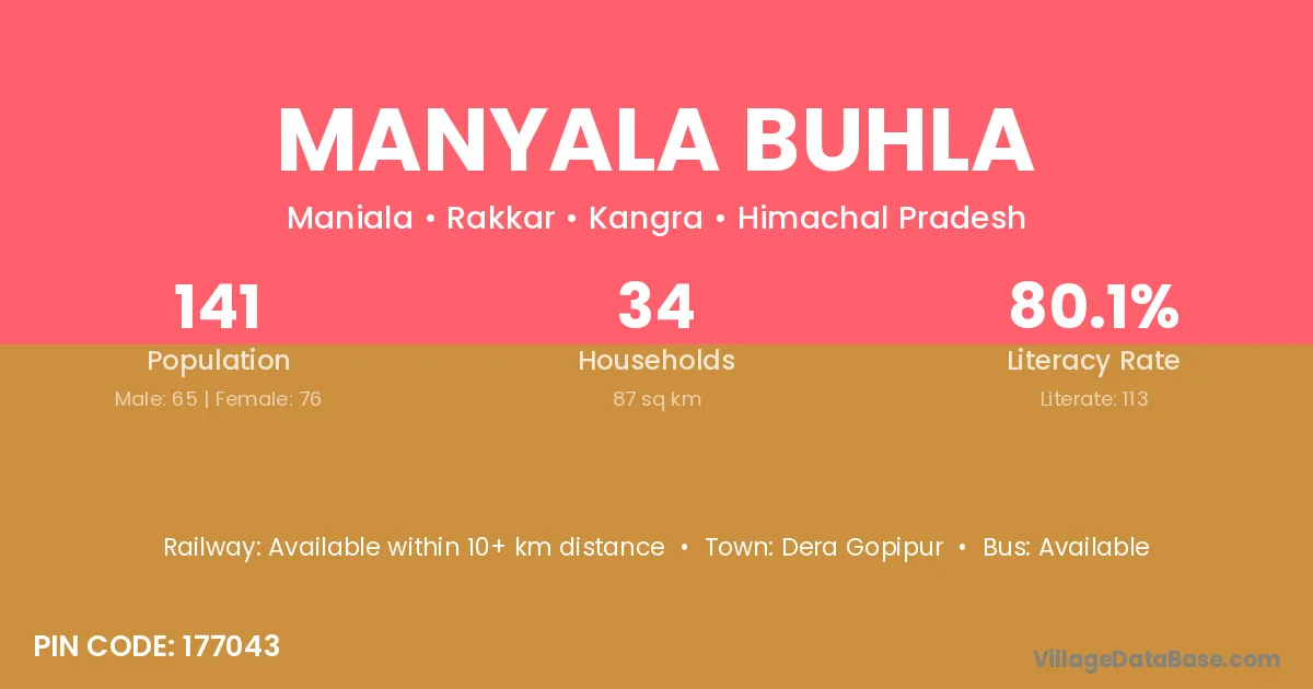 Manyala Buhla village has a total population of 141 people, of which 65 are males and 76 are females.