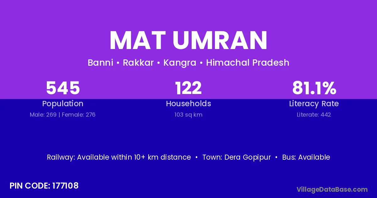 Dera Gopipur is the nearest town to Mat Umran village for major economic activities