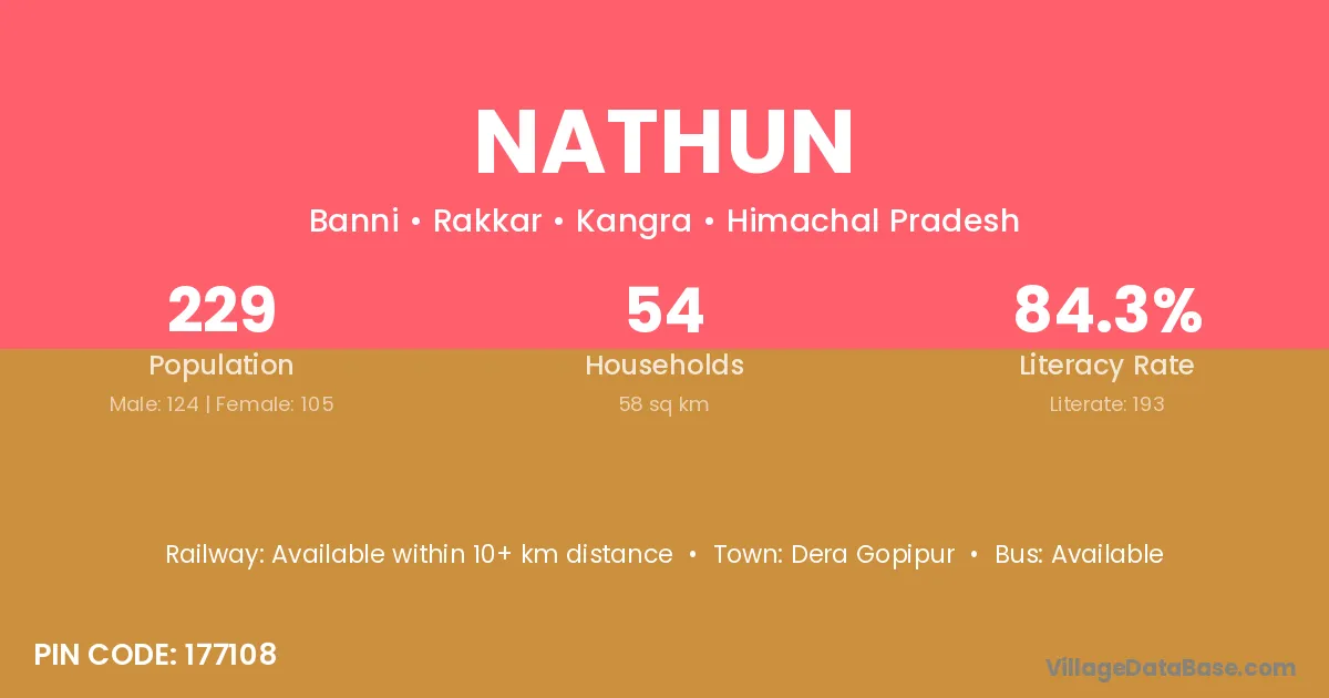 Nathun village is located in the Rakkar Tehsil of the Kangra district in Himachal Pradesh .