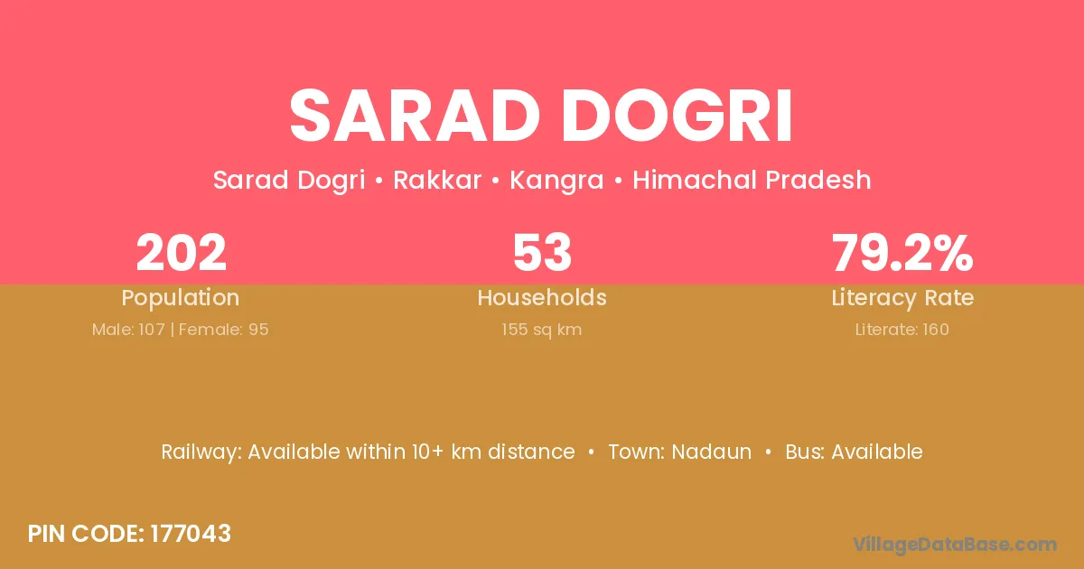 Sarad Dogri village has a total population of 202 people, of which 107 are males and 95 are females.