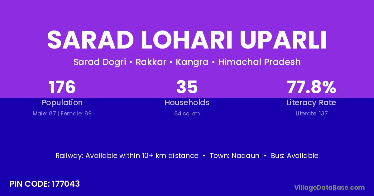 According to Census 2011 information, the village code of Sarad Lohari Uparli village is 177043.
