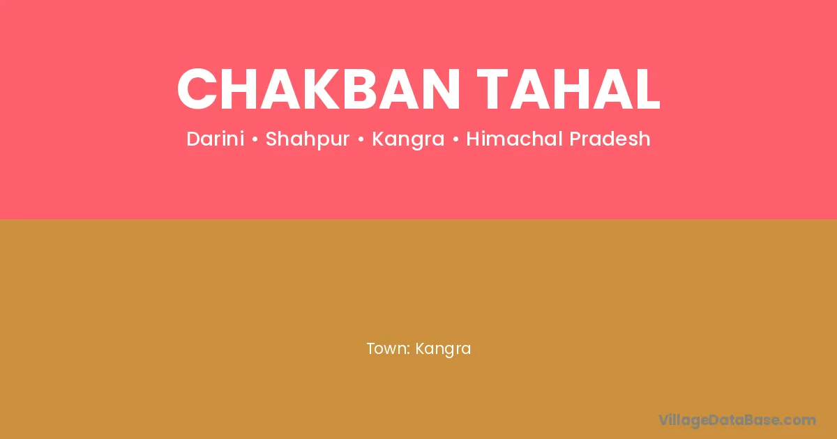 Kangra is the nearest town to Chakban Tahal village for major economic activities