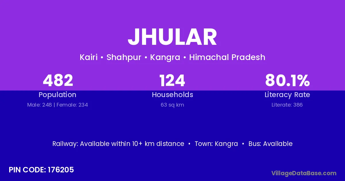 Kangra is the nearest town to Jhular village for major economic activities