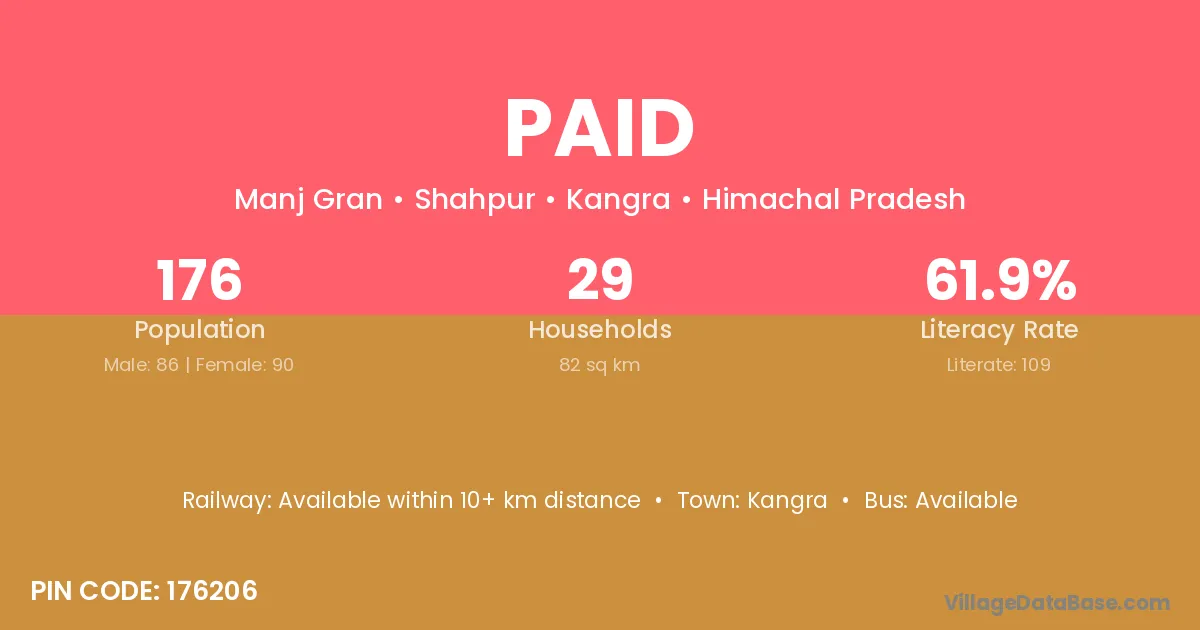 Kangra is the nearest town to Paid village for major economic activities
