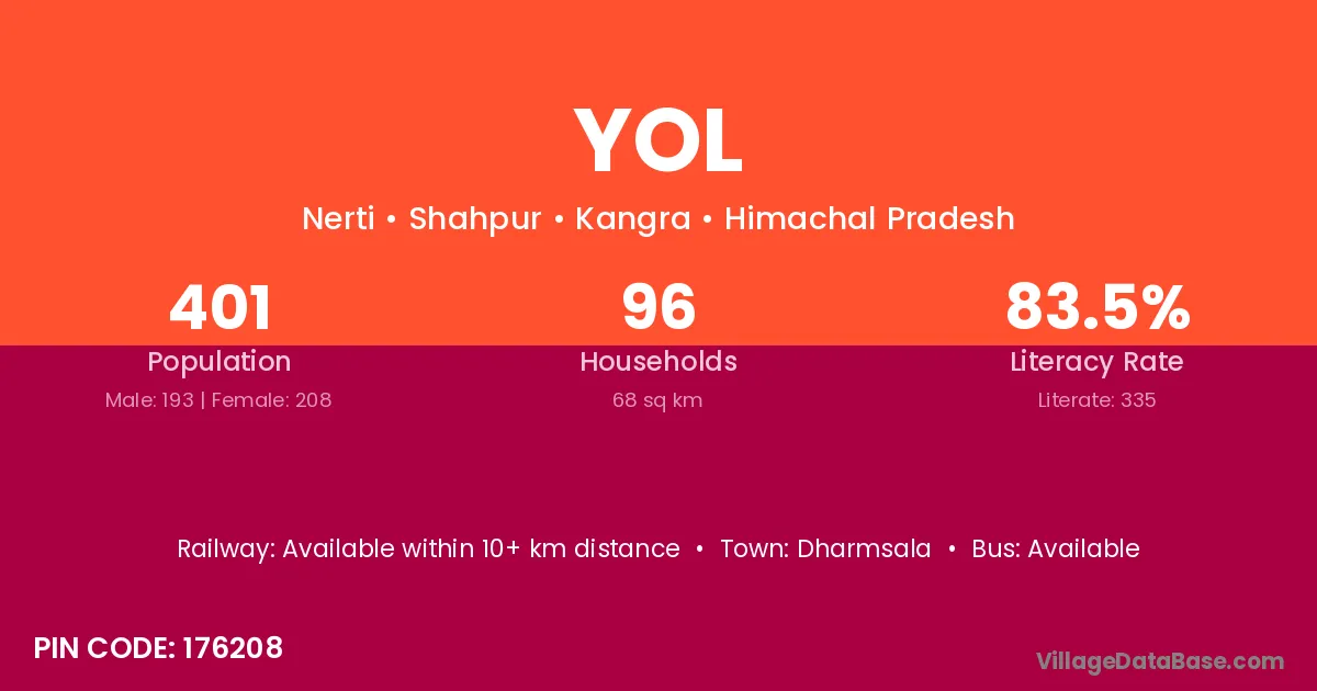 The literacy rate of Yol village is 83.54%. Male literacy stands at 88.60% and female literacy at 78.85%.