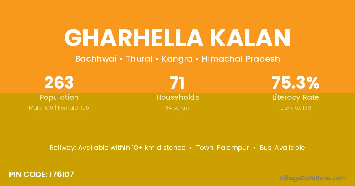 Gharhella Kalan village has a total population of 263 people, of which 108 are males and 155 are females.
