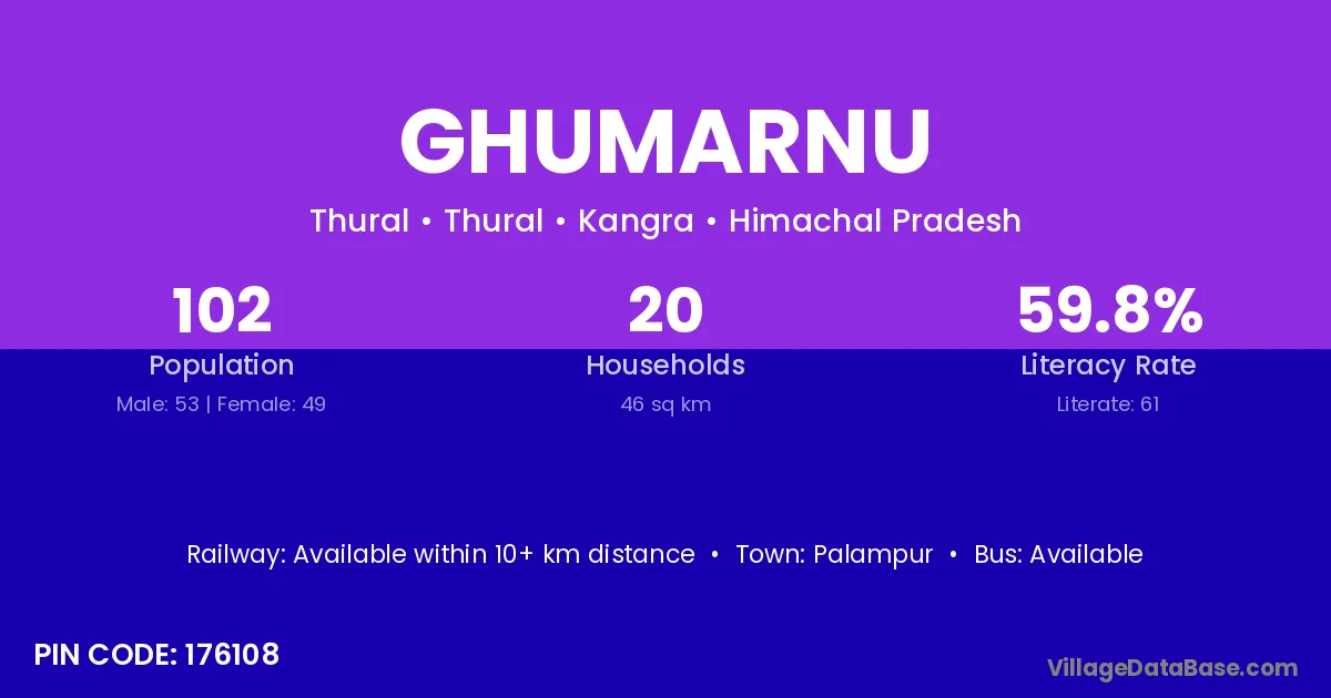 Ghumarnu village has a total population of 102 people, of which 53 are males and 49 are females.