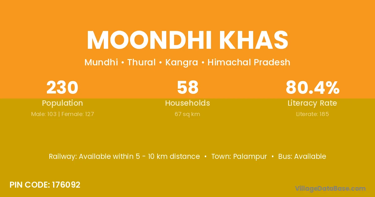 Palampur is the nearest town to Moondhi Khas village for major economic activities