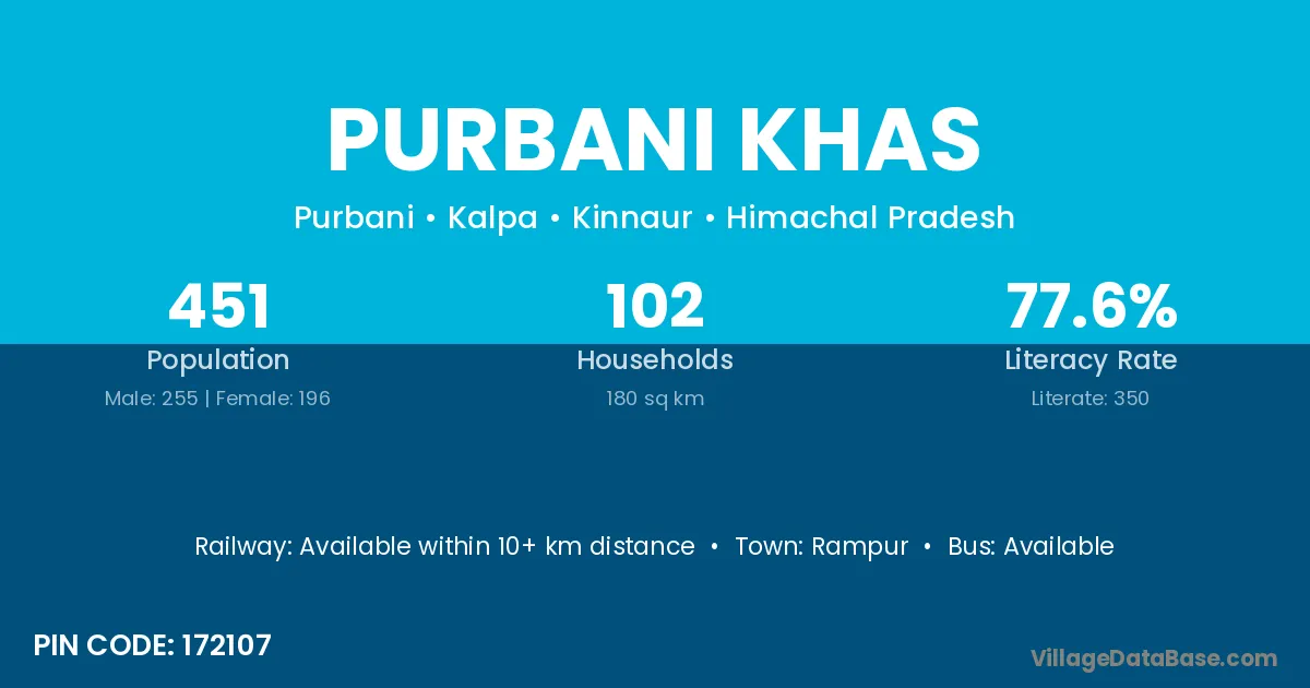 Rampur is the nearest town to Purbani Khas village for major economic activities