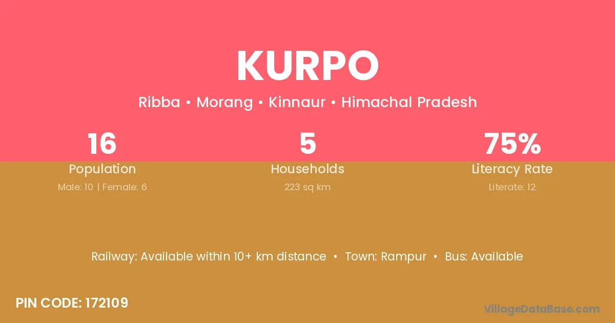 Kurpo village has a total population of 16 people, of which 10 are males and 6 are females.