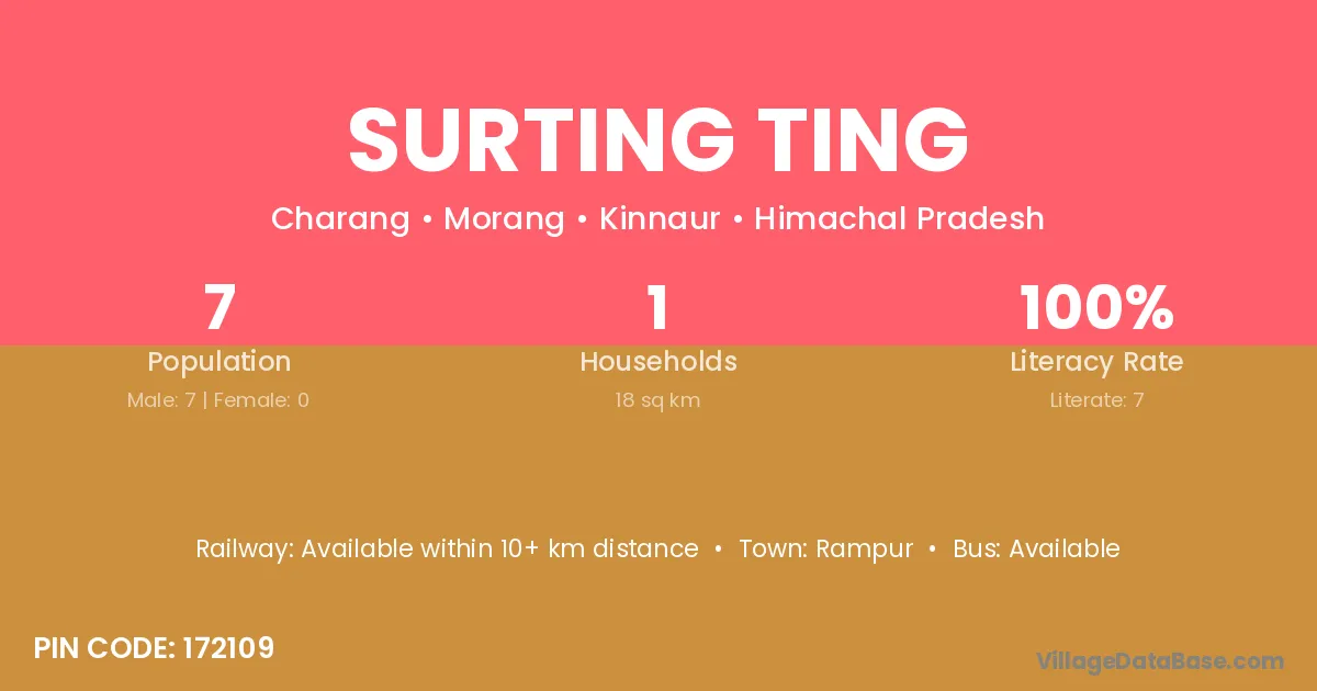 Surting Ting village has a total population of 7 people, of which 7 are males and 0 are females.