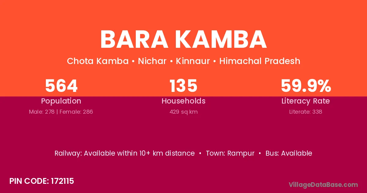 Bara Kamba village has a total population of 564 people, of which 278 are males and 286 are females.