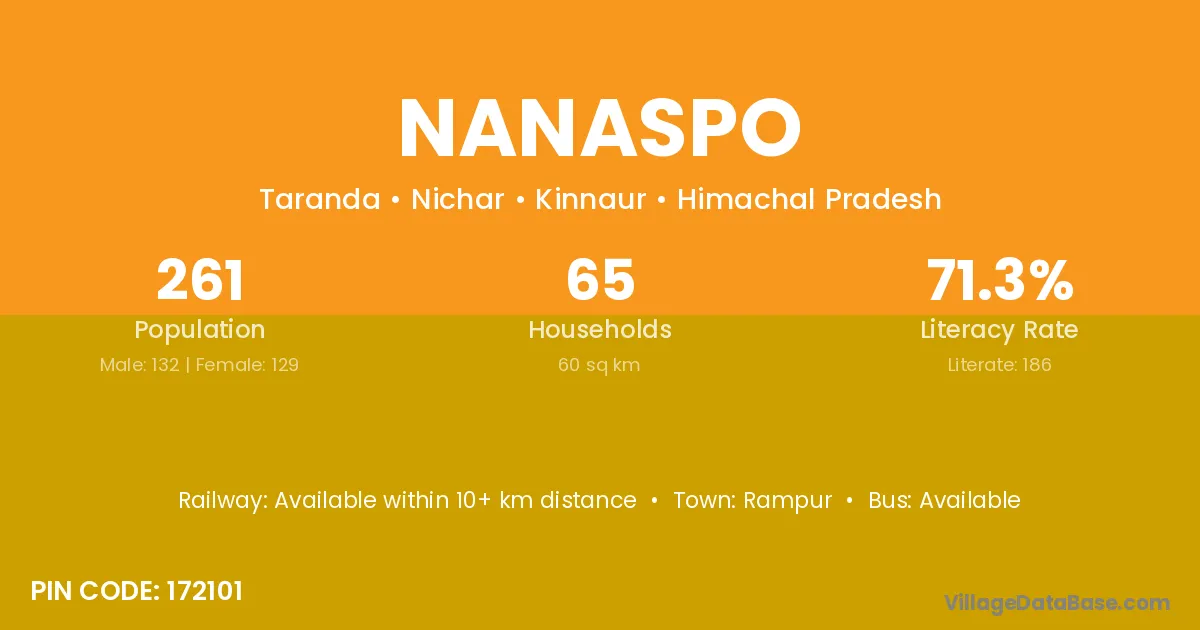 Nanaspo village has a total population of 261 people, of which 132 are males and 129 are females.