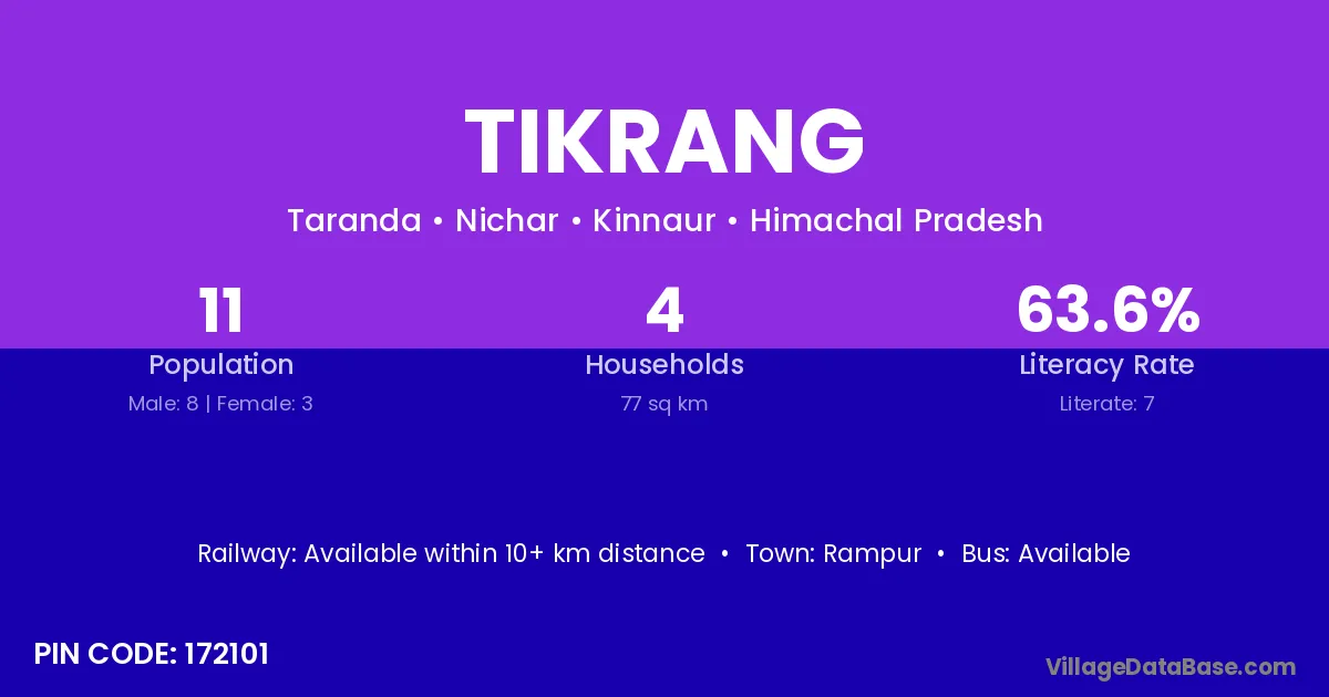 Tikrang village has a total population of 11 people, of which 8 are males and 3 are females.