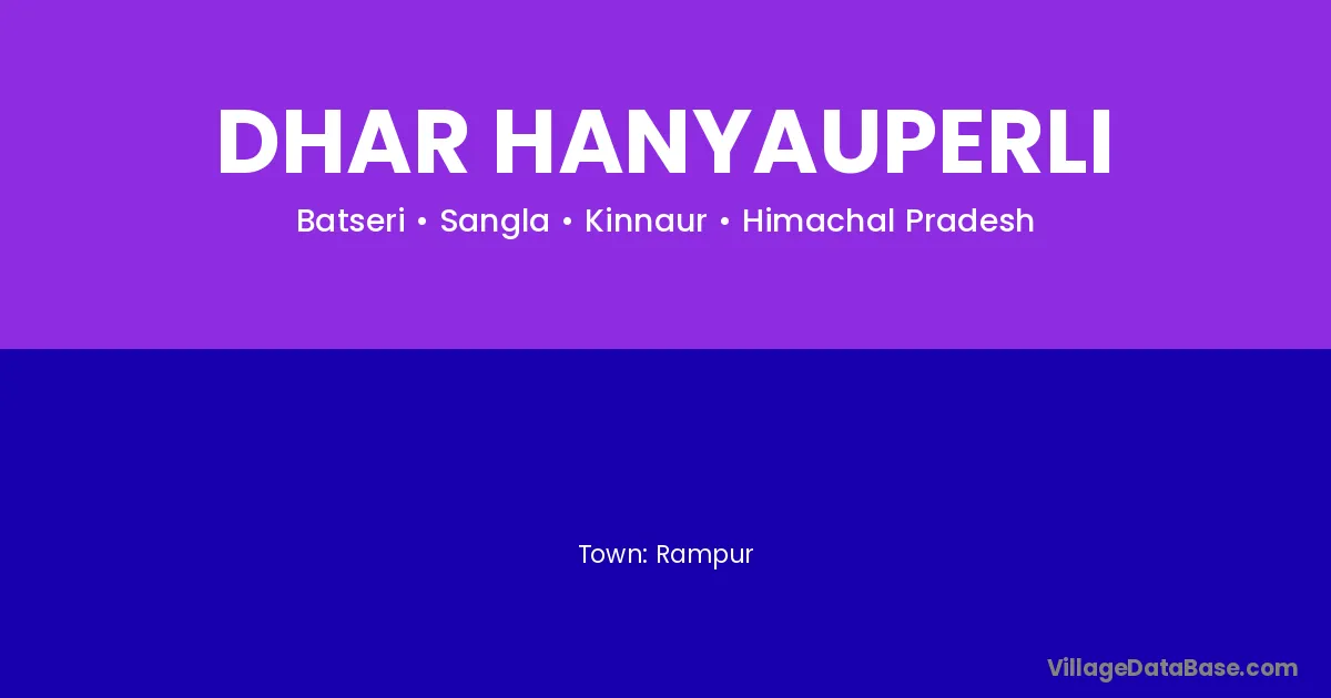 Dhar Hanyauperli village is located in the Sangla Tehsil of the Kinnaur district in Himachal Pradesh .