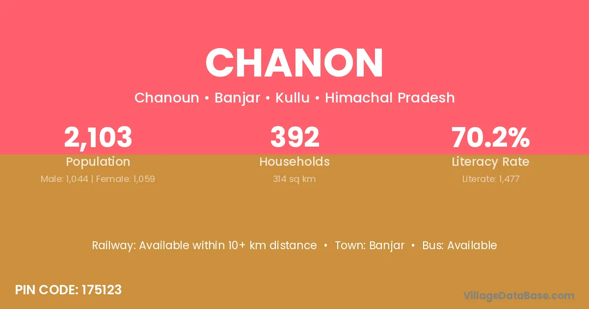 Chanon village is located in the Banjar Tehsil of the Kullu district in Himachal Pradesh .