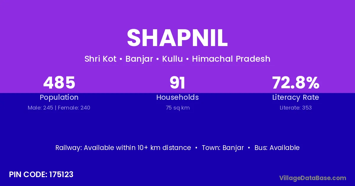Shapnil village has a total population of 485 people, of which 245 are males and 240 are females.