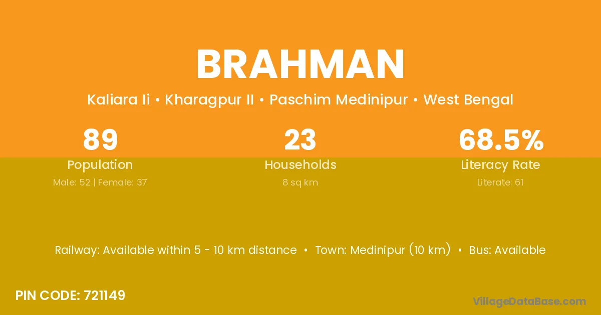 The literacy rate of Brahman village is 66.74%. Male literacy stands at 74.14% and female literacy at 59.21%.