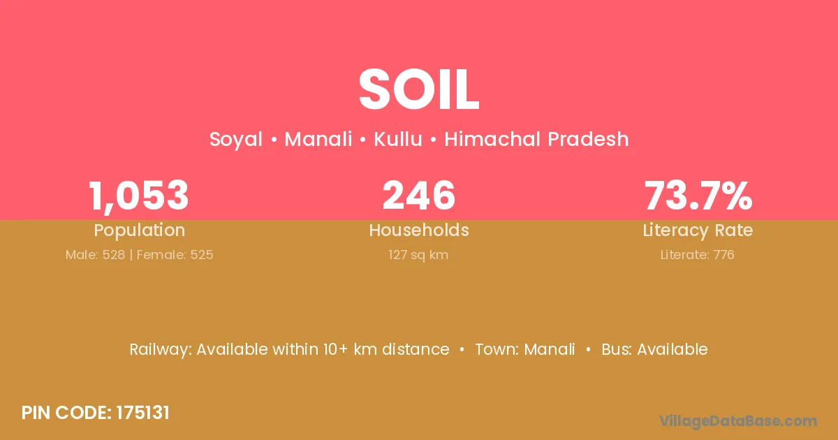 Manali is the nearest town to Soil village for major economic activities