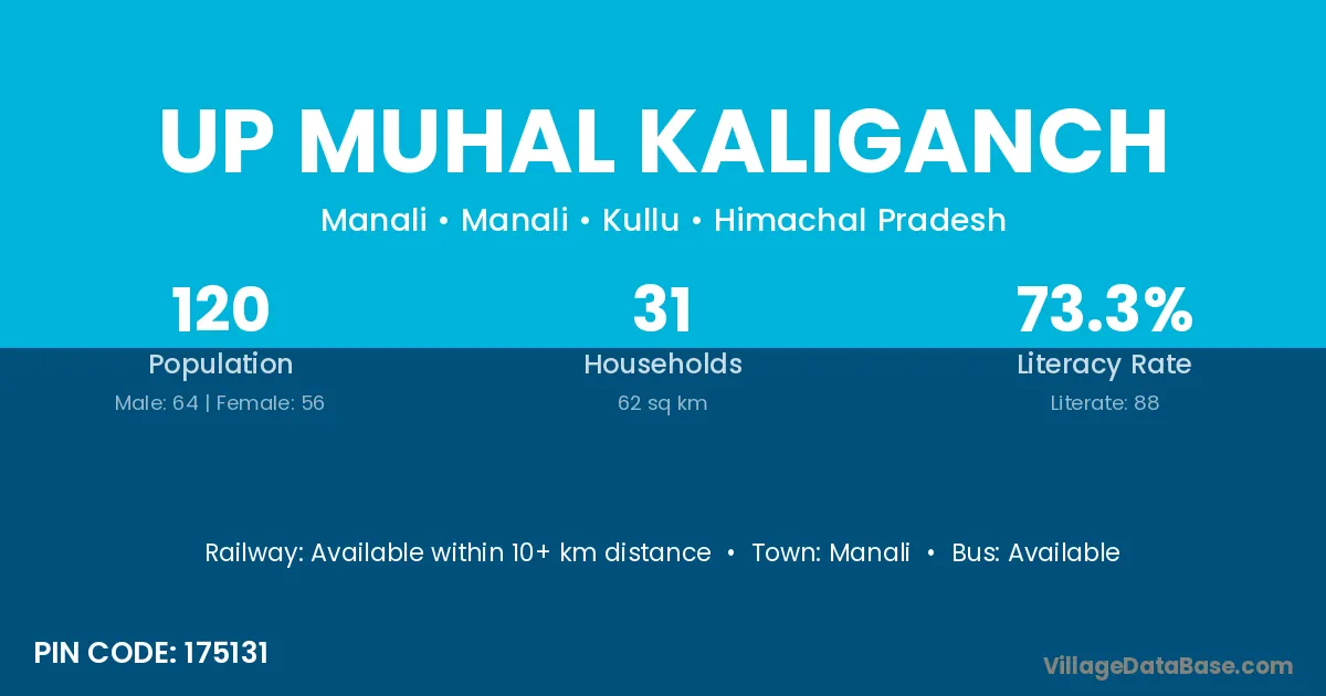 Manali is the nearest town to Up Muhal Kaliganch village for major economic activities