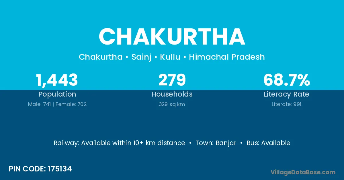 Chakurtha village has a total population of 1,443 people, of which 741 are males and 702 are females.