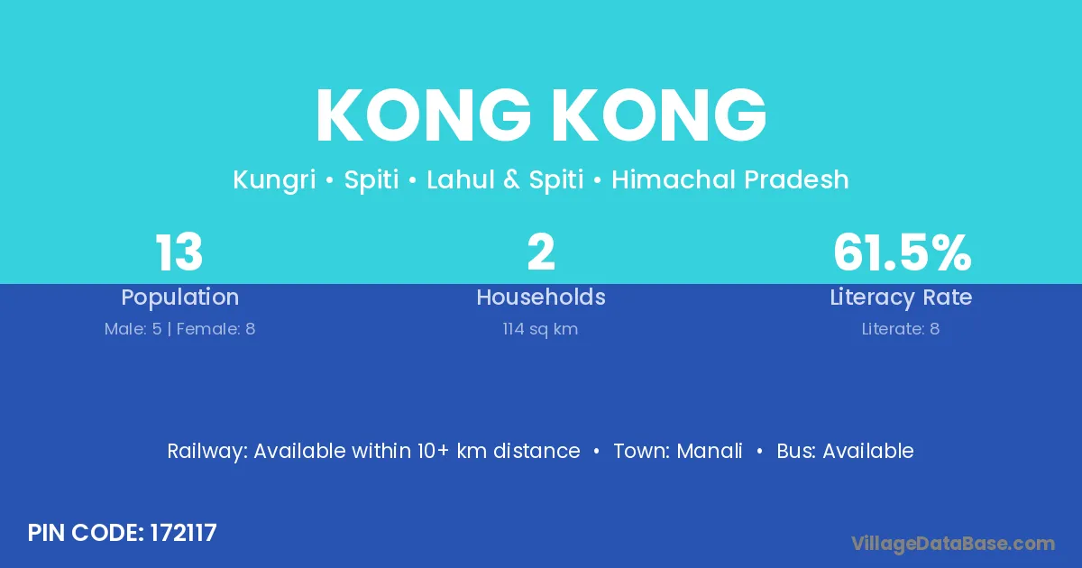 Manali is the nearest town to Kong Kong village for major economic activities