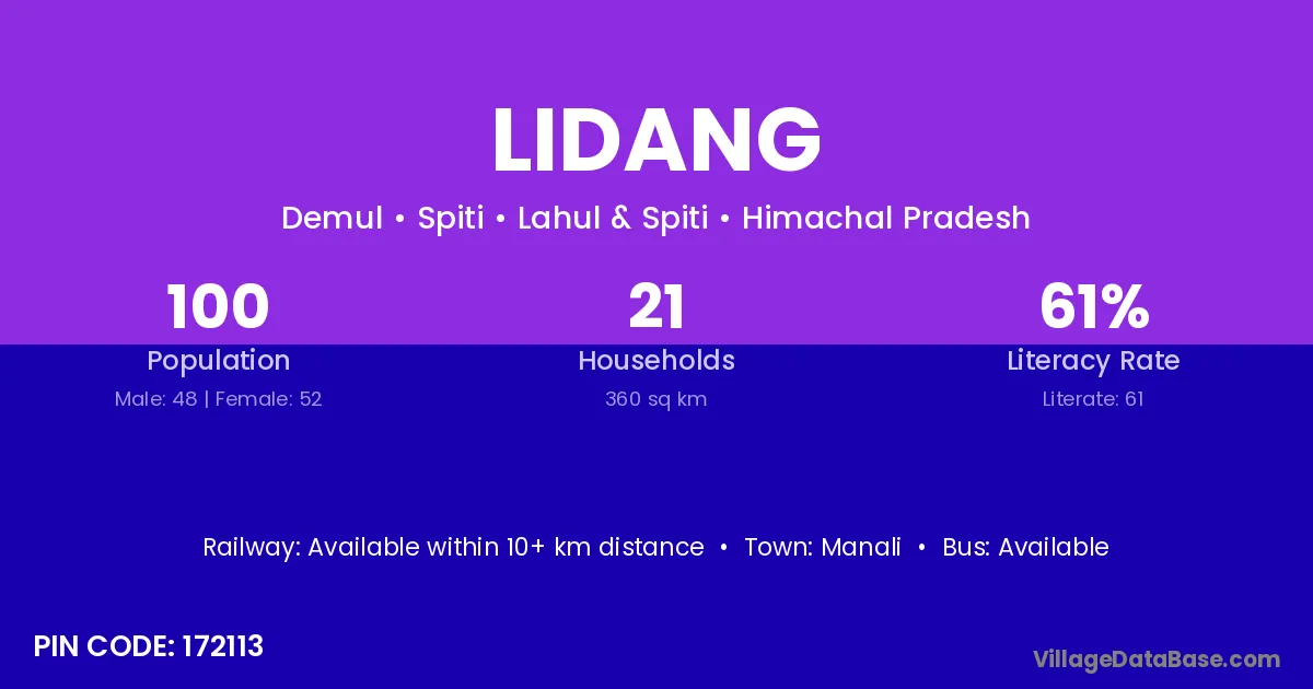 Manali is the nearest town to Lidang village for major economic activities