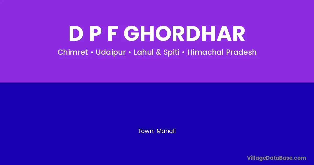 D P F Ghordhar village is located in the Udaipur Tehsil of the Lahul & Spiti district in Himachal Pradesh .