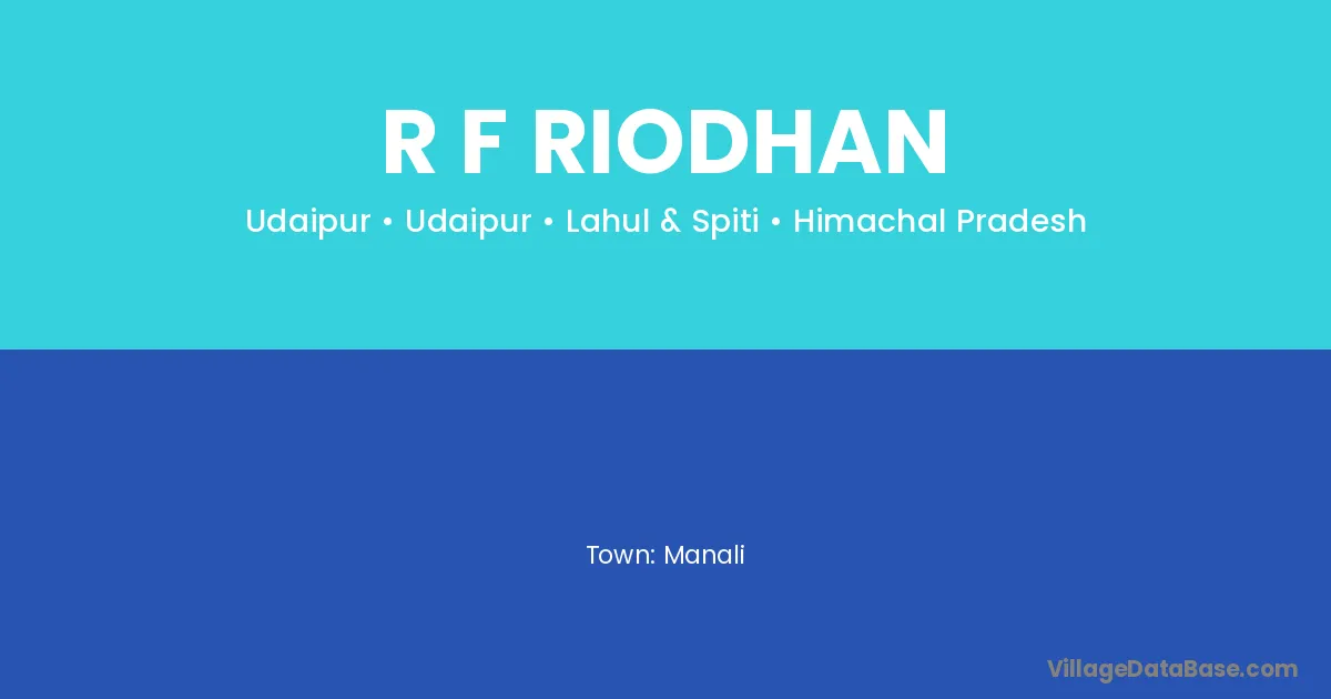 R F Riodhan village is located in the Udaipur Tehsil of the Lahul & Spiti district in Himachal Pradesh .