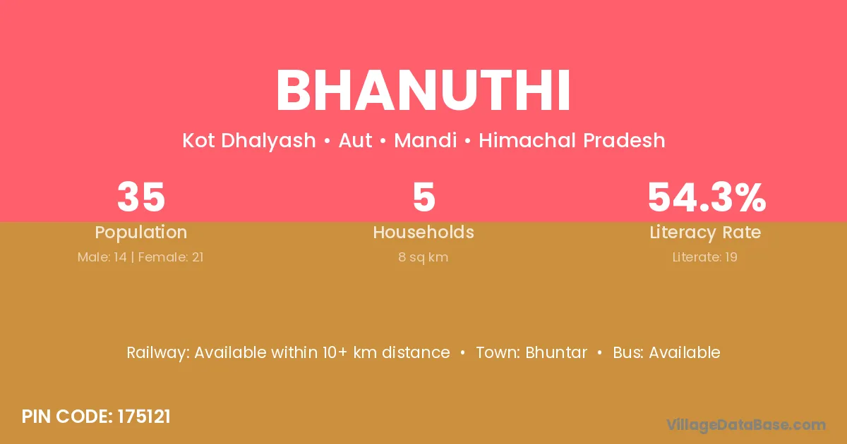 Bhuntar is the nearest town to Bhanuthi village for major economic activities