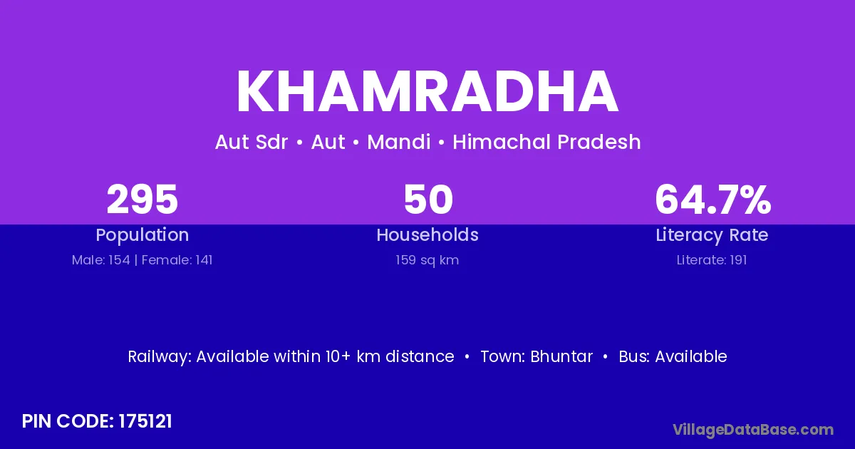 Bhuntar is the nearest town to Khamradha village for major economic activities
