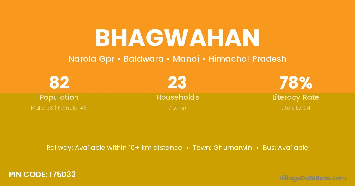 Bhagwahan village has a total population of 82 people, of which 33 are males and 49 are females.