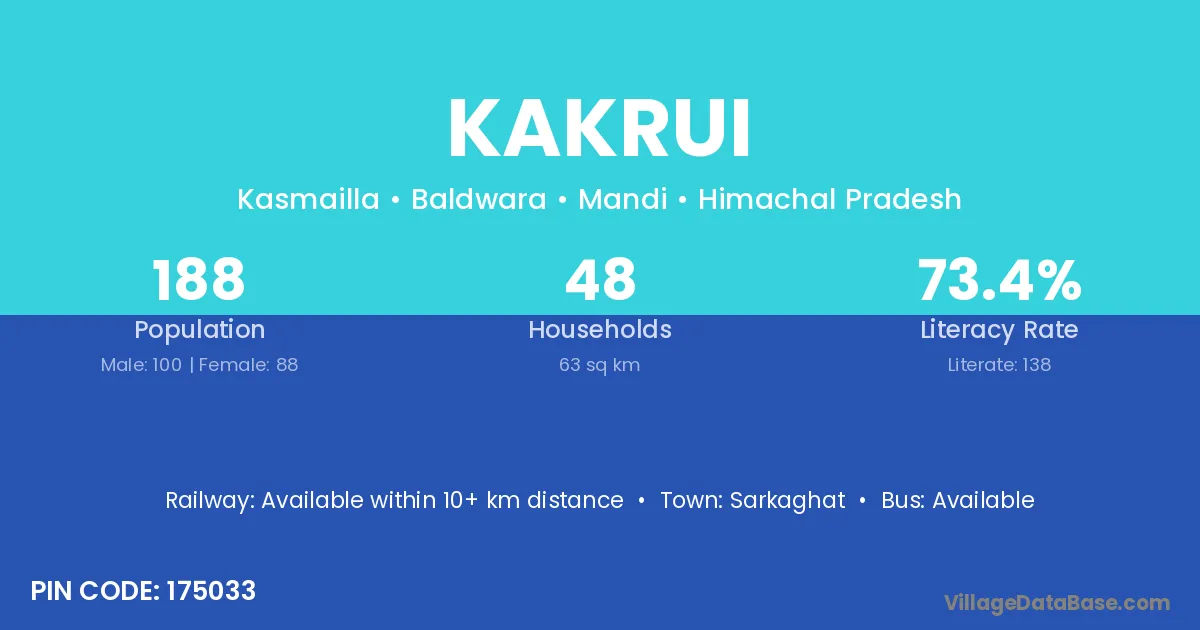 Sarkaghat is the nearest town to Kakrui village for major economic activities