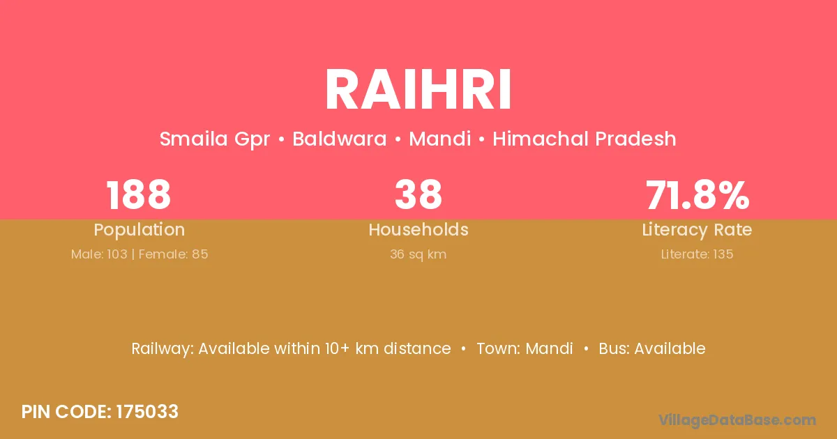 According to Census 2011 information, the village code of Raihri village is 175033.