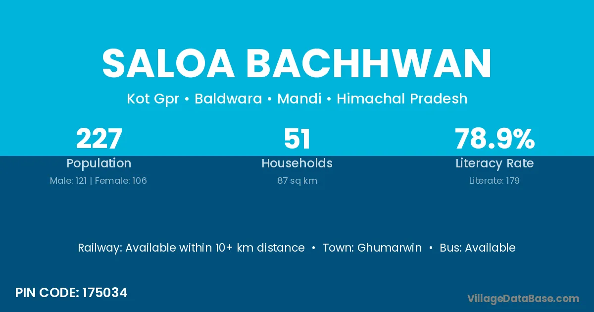 Saloa Bachhwan village has a total population of 227 people, of which 121 are males and 106 are females.
