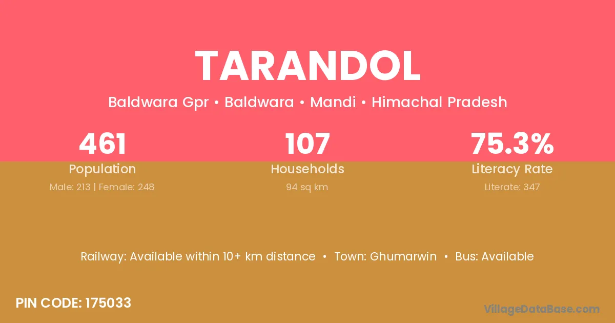 Tarandol village has a total population of 461 people, of which 213 are males and 248 are females.