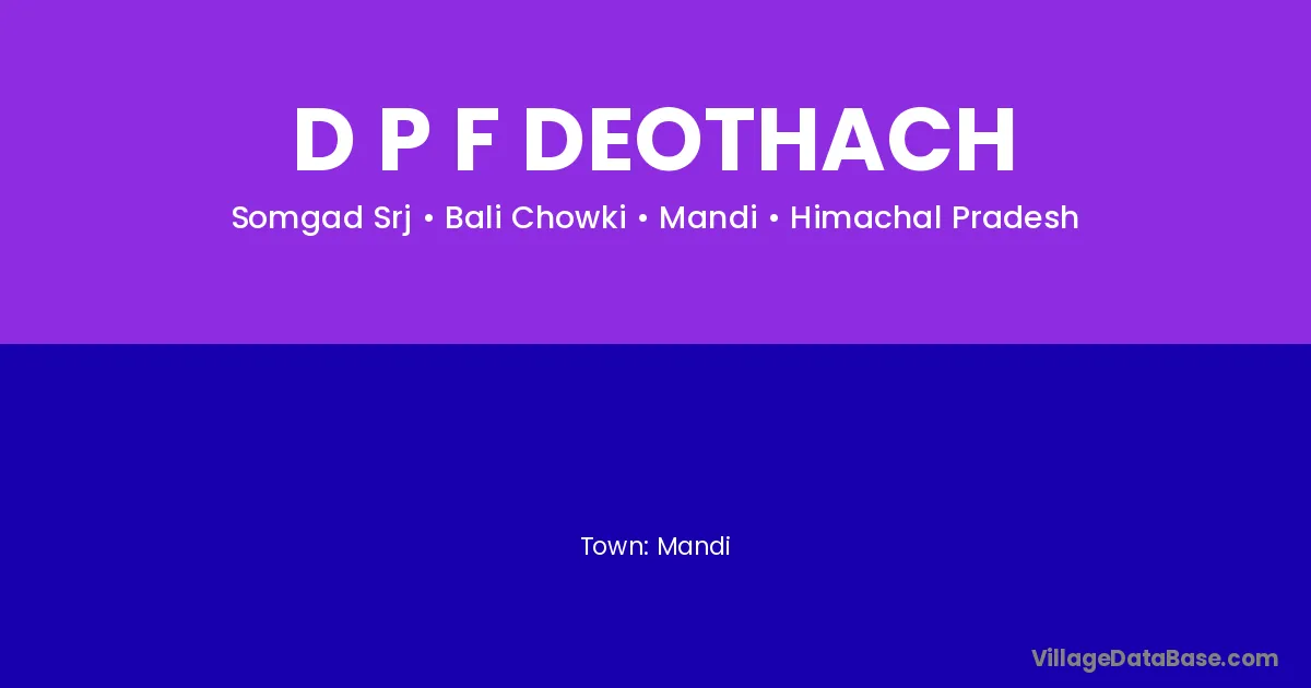 D P F Deothach village is located in the Bali Chowki Tehsil of the Mandi district in Himachal Pradesh .