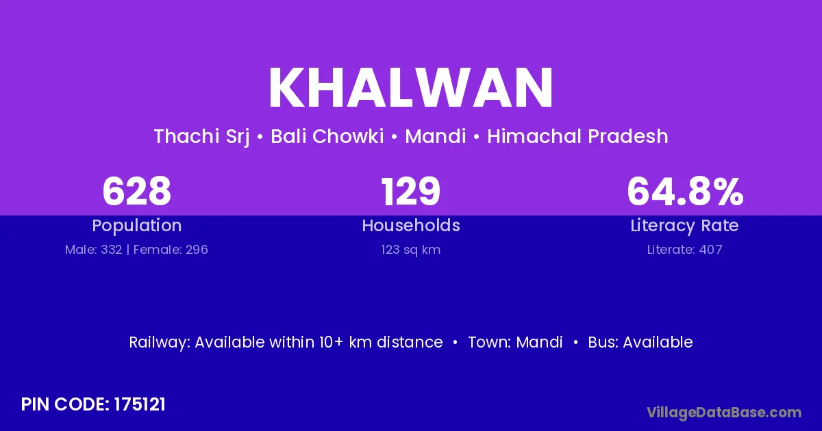Mandi is the nearest town to Khalwan village for major economic activities