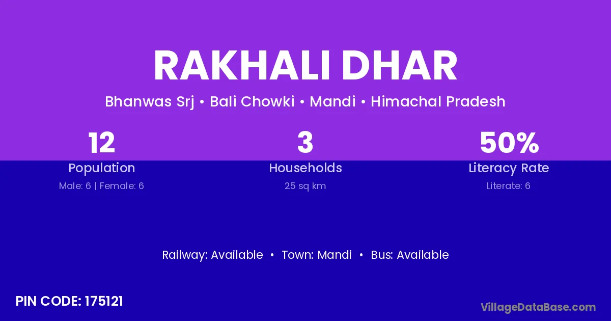 Rakhali Dhar village has a total population of 12 people, of which 6 are males and 6 are females.